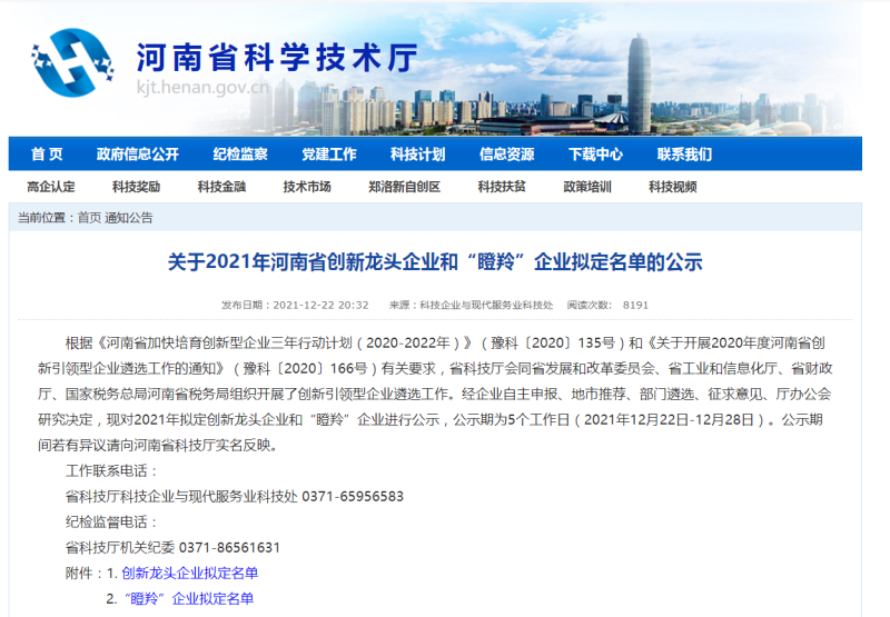 近日,河南省科學技術廳公布了2021年河南省“瞪羚”企業(yè)擬認定名單,洛陽科博思新材料科技有限公司成功入選。